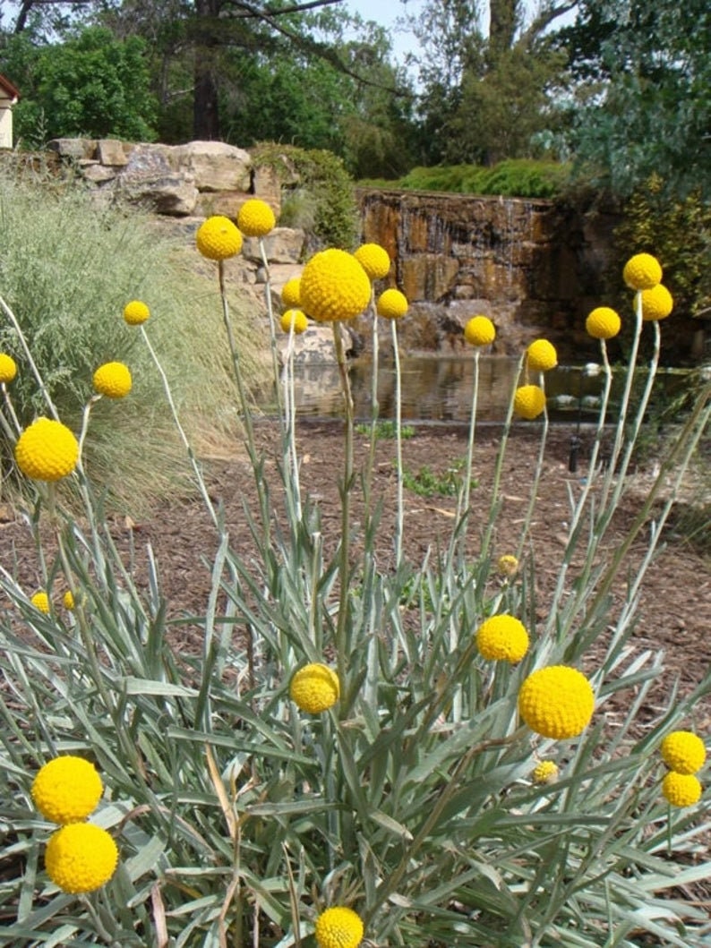 Craspedia is a beautiful plant that impresses with its amazing appearance. Its inflorescences are shaped like yellow balls. Craspedia belongs to the Asteraceae plant. Its natural area of occurrence is Australia. The height is usually 24-30 in. Yellow baskets of spherical flowers are located on the tips of stiff, leafless shoots. The average diameter of the inflorescence is 0.8-1.2 in. A cut flower in a vase looks good even for two weeks. Craspedia globosa was first described in 1867 by George Bentham. Craspedia can be used to create interesting compositions on discounts. Mainly recommended for country-style gardens, but thanks to its unusual appearance, it will decorate any garden. It will look beautiful in the company of flowers of contacting colors and ornamental grasses. Planted in deep pots - it will beautifully decorate a balcony or terrace. The perfect plant for creating dry bouquets. Seeds are sowing in February under covers. They germinate after 10-20 days at 64F. After 6-8 weeks, the seedlings are picked into pots 2-3 in. in diameter. Permanently plant them from March under foil covers, and in the second half of May, to the ground. Craspedia, as it is quite exotic plant, requires warm, sunny and permeable soil. Blooms profusely all summer until fall.