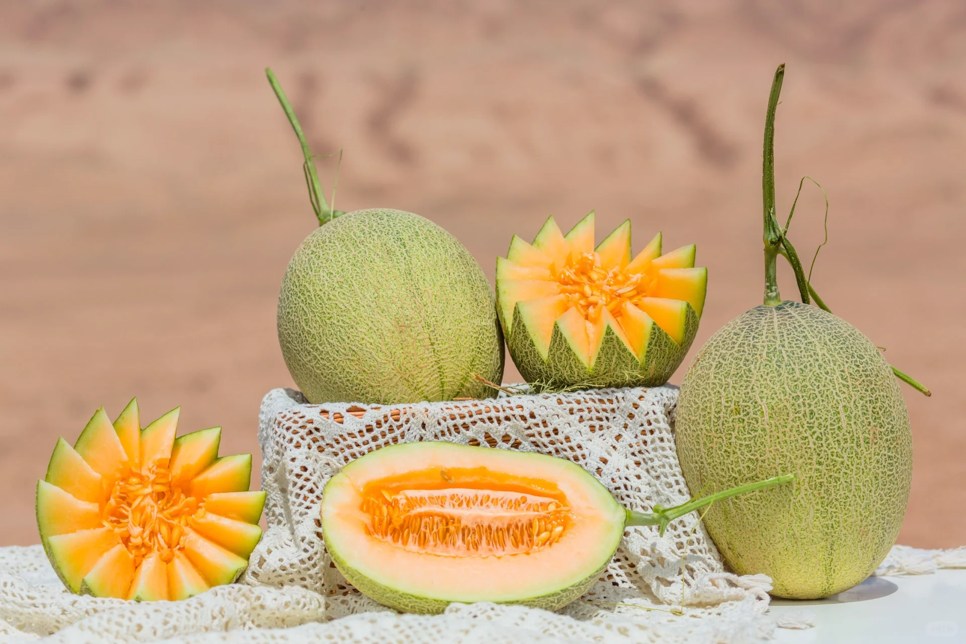 🍈The reticulated cantaloupe fruit is elliptical in shape, with greenish-yellow skin and dense reticulated patterns all over. The flesh ranges from light yellow on the periphery to orange in the center. The sweetness also increases layer by layer, and the taste is rich.