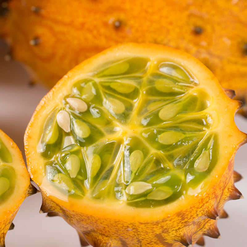 🟠The fire ginseng fruit is the horned melon, which is native to the Kalahari Desert in Africa. The flesh of the thorn melon is delicate and multi-seeded. It is gelatinous like a cucumber and has a sweet taste, which tastes like a mixture of banana, lemon and cucumber.