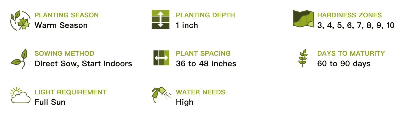 Avoid growing watermelon where night temperatures dip below 50 F; this will cause fruit to lose flavor. If temperatures exceed 90F for several days, flowers will drop without setting fruit. Watermelons require 70-90 frost-free days to reach harvest and will tolerate no frost. A soaker hose or drip irrigation is the best way to water. If you live in an area where the weather and soil are dry, try planting your watermelon in inverted hills rather than mounds. Regular, even watering will help fruits avoid blossom-end rot which is caused by fluctuation of soil moisture. Companion plants are corn, radish, beans, nasturtiums, marigolds and oregano. Bad companions are potatoes as they attract many of the same insects that feed on watermelon plants.