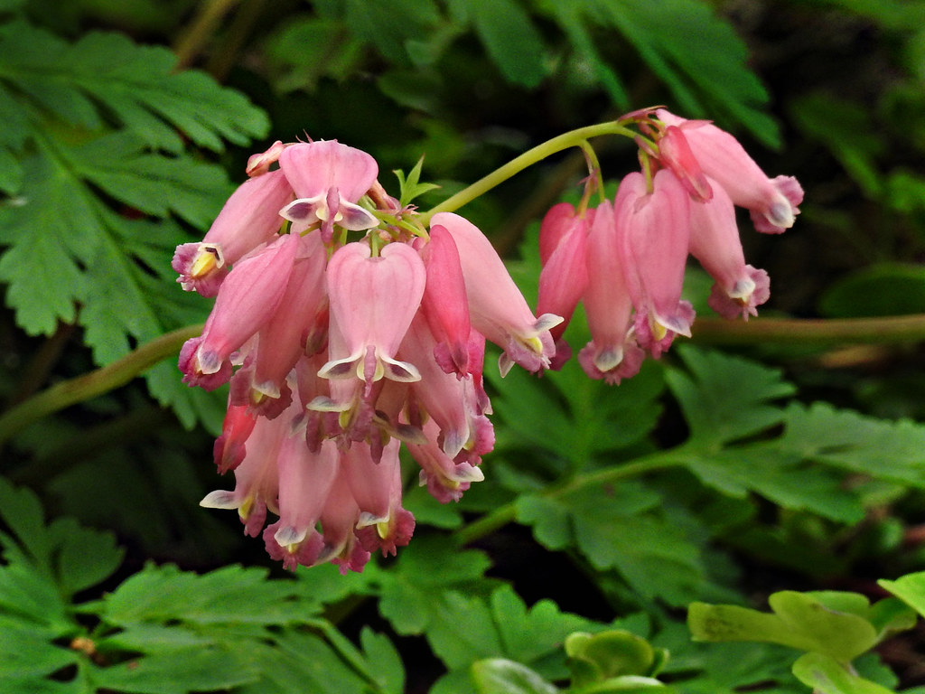 Does well in both full sun and shade.  In mid March the plant slowly erupts from dormancy to unfurl leaves and flowers. Mid pink bleeding heart shaped flowers barely hover over the soft dissected foliage.  Even as seed capsules ripen, the pink flowers persist.  By mid summer the plant goes into dormancy. By fall nothing remains except for the pink fleshy rhizomes that lay just under the soil surface.  Will spread making a good sized clump. Much loved by bumblebees and despite it being out in the open, deer and rabbits are not tempted to nibble on it. Near pest free.