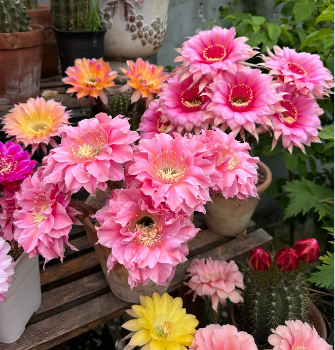 Flowering Cycle: With patience and the right care, these cacti reward you with large, vivid blooms that last from a few hours to several days. To encourage flowering, provide ample sunlight, reduce watering in winter, and apply a balanced cactus fertilizer in spring.