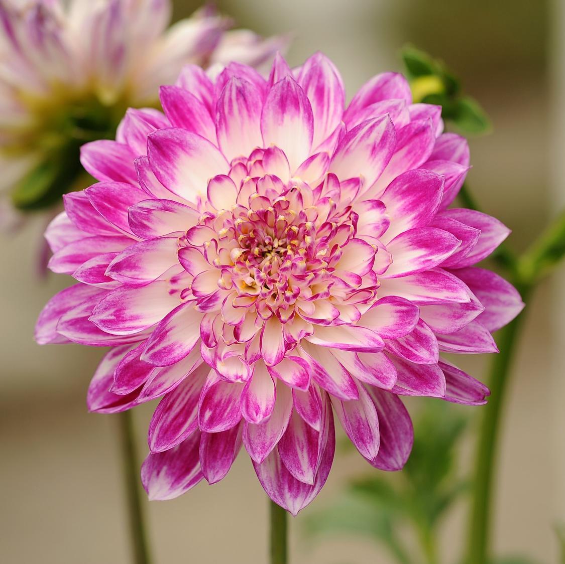 ‘Strawberry Cream’ is a beautiful, high producing pink and white dahlia with straight stems, and beautiful coloring that is so easy to blend into bouquets.