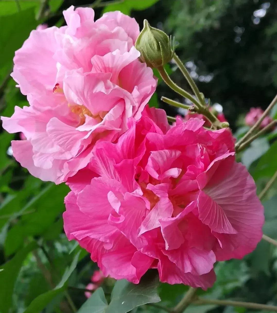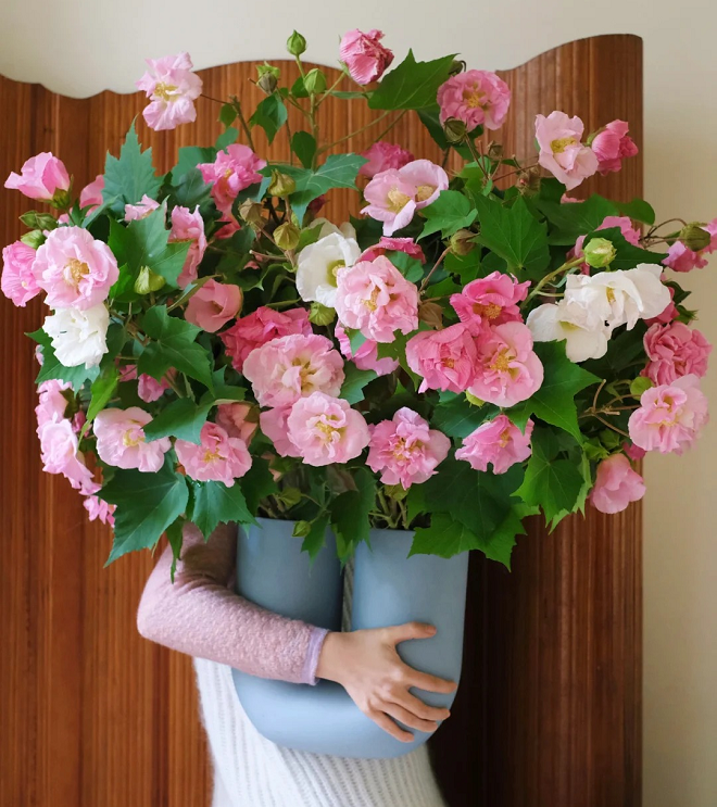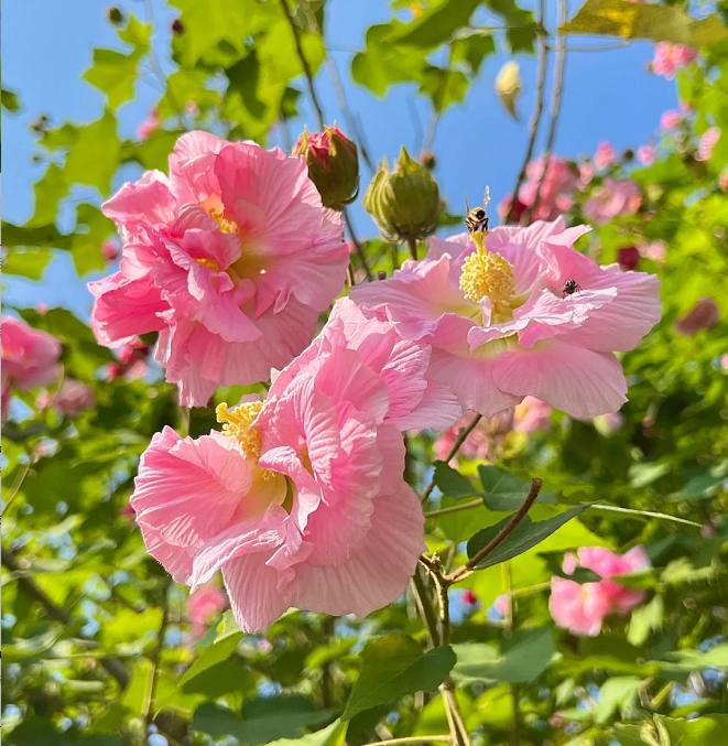 🌸The drunken hibiscus resembles a peony, elegant and gorgeous, so it is called "water-reflecting hibiscus". The color of the petals of the wood hibiscus is as white as snow in the morning, turns light red at noon, and turns dark red in the evening. The color of the flower changes three times a day, so it is also called "three drunken hibiscus".