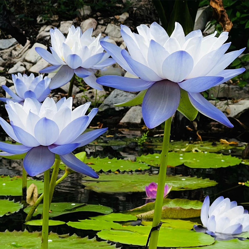 The Australian Giant Lotus is a little different from the usual water lilies. The larger blue quilts are loosely arranged like a lotus. The shape of the flowers is dreamlike and there are not many flowers. Can also be cultivated for ornamental.
