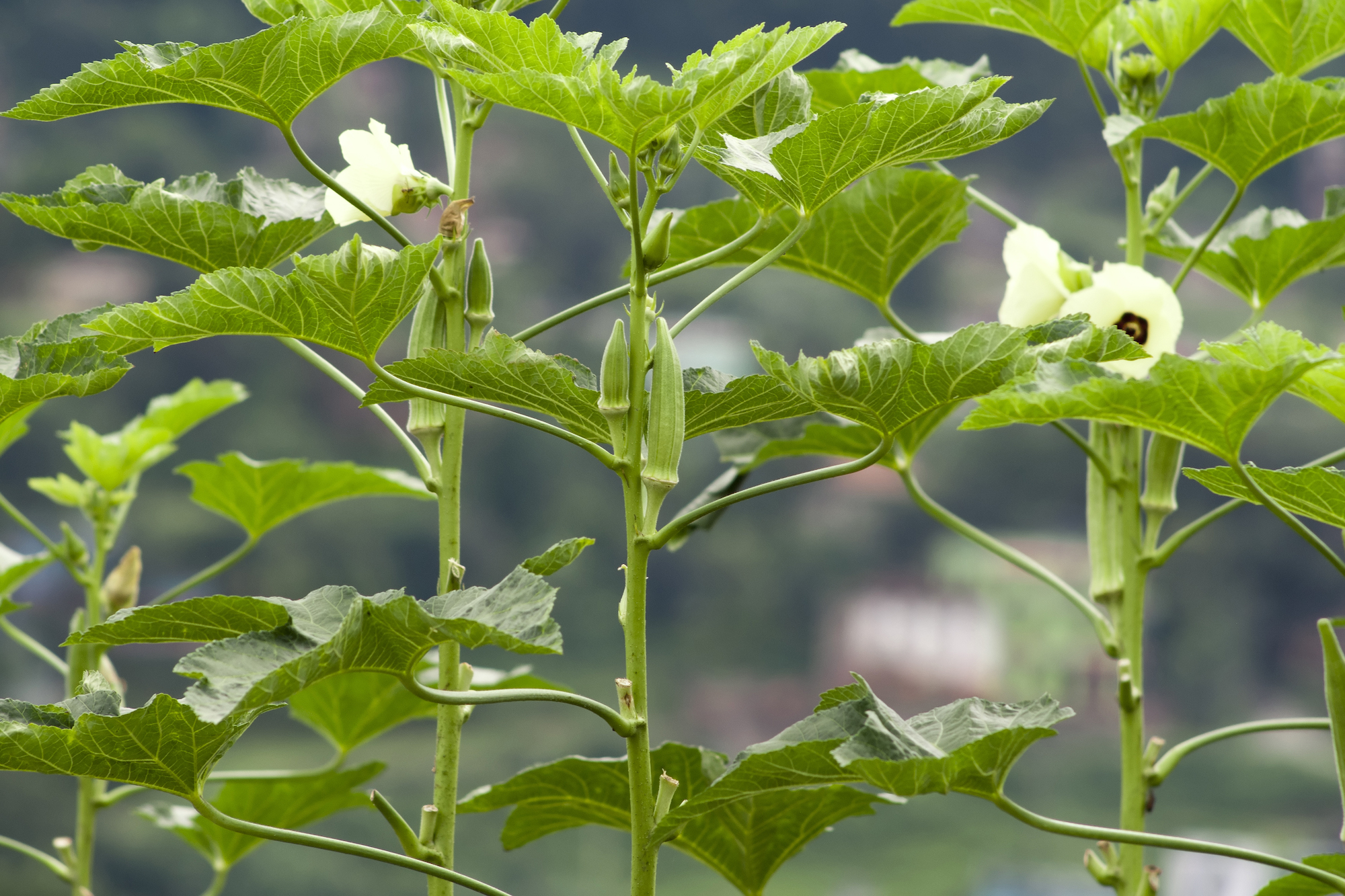 If you look at the flower of okra, you’ll see a resemblance to a hibiscus flower. It’s no coincidence—okra is a member of the hibiscus family!